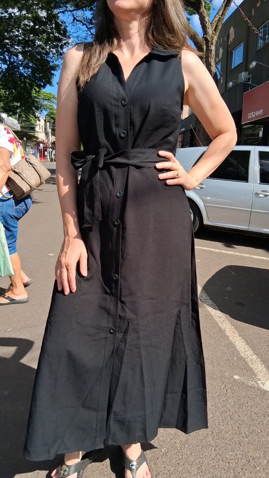 Vestido Longo Preto com Botões e Cinto de Tecido – Tamanho P (veste M) 🖤